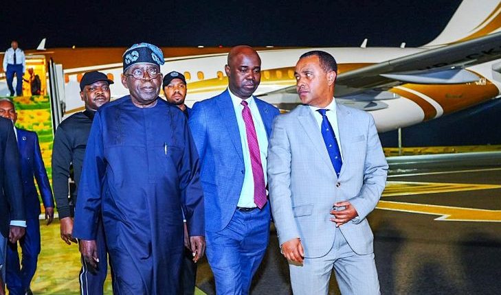 وصل الرئيس النيجيري بولا أحمد تينوبو في وقت متأخر من مساء يوم الخميس إلى أديس أبابا إثيوبيا، لحضور الدورة العادية الثامنة والثلاثين لرؤساء دول وحكومات الاتحاد الأفريقي